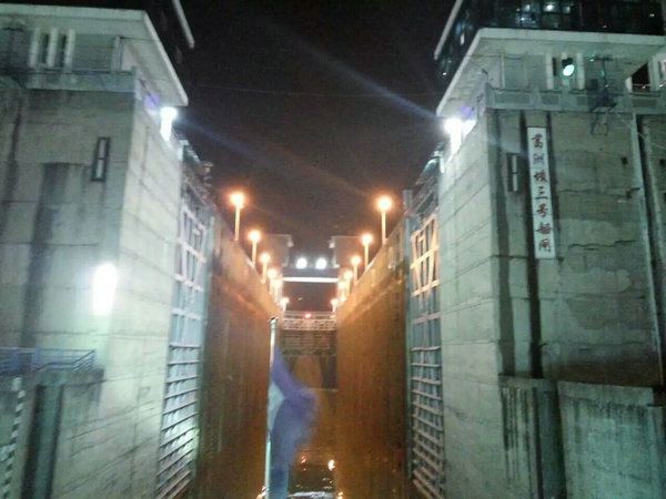 20:45 夜游船经过葛洲坝船闸,体验水涨船高的奇特感受。