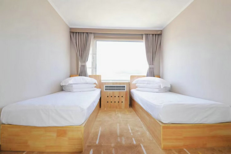【江景双人标准间(三楼,四楼)】:房型结构2人间,面积16.48平方米,床型2张平铺(0.8*2米)单人床,窗型有,甲板层3、4。房型说明:2人间, 2张平铺(0.8*2米)单人床,每个房间都配有巨幅观景窗、空调、彩电、独卫、淋浴等设施。