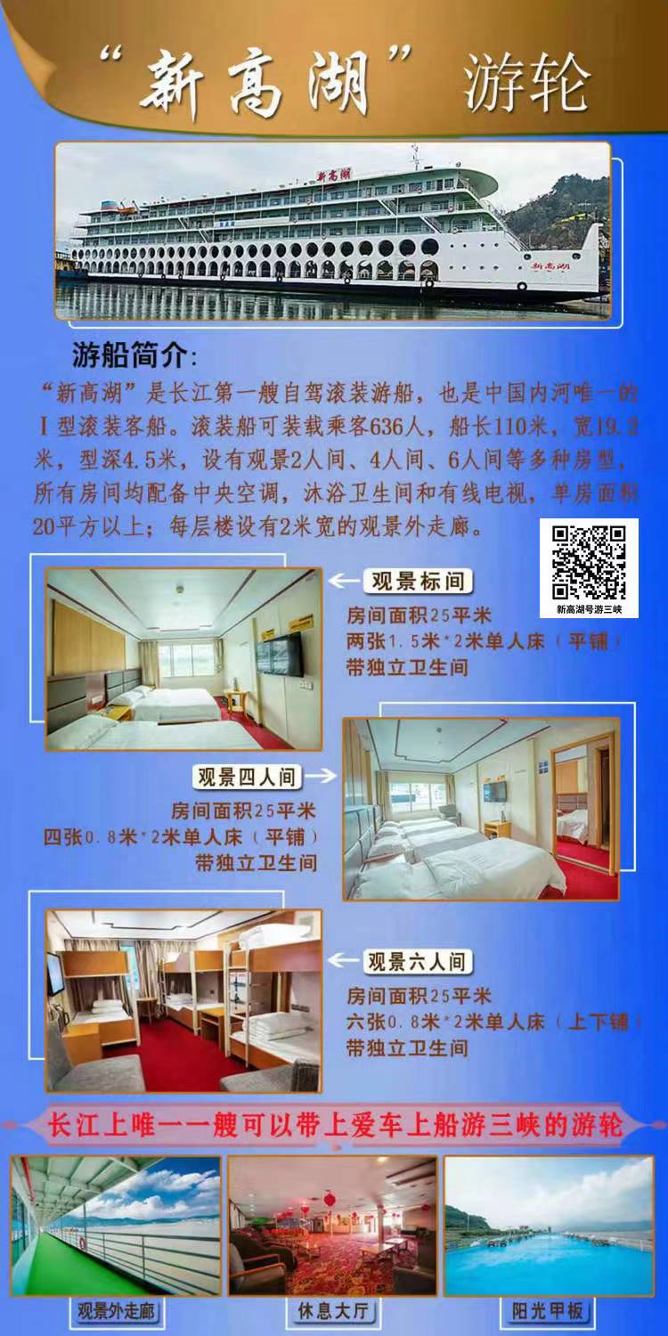 新高湖长江三峡旅游游船实际行程和开船时间以游船安排为准!